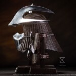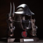 Standing 21” tall displayed on a 21.5” wide base the Shredder Armor Set showcases the leader of the Foot Clan’s signature armaments including his helmet, bracers and dual-clawed weapon. The set is arranged neatly on a faux-wooden base with a metallic name plate to elevate your TMNT display to museum status.