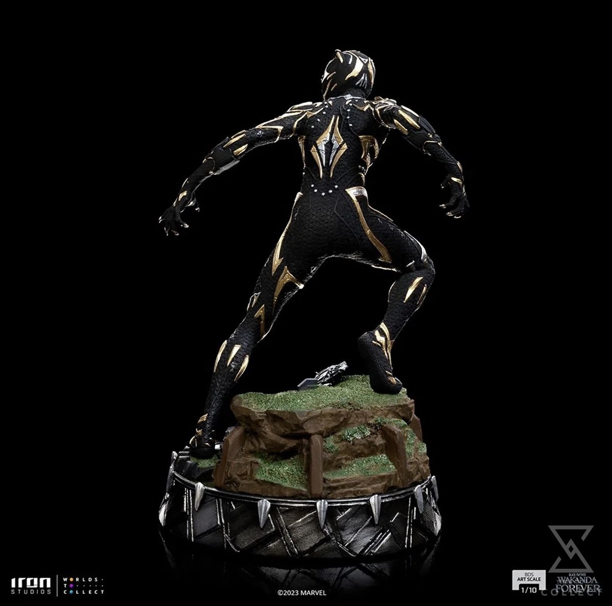 Wearing a costume designed by herself, light and almost indestructible, made exclusively of Vibranium that makes her immune to most of the physical damage from conventional weapons. Ready for combat with retractable and extendable Vibranium claws embedded in the gloves, and equipped with sound-absorbing shoes that nullify all the noise and allow her to move like a true feline. Over a base filled with details that present the royal palace of Wakanda in miniature, a Wakandan aircraft Royal Talon Fighter taking off, the panther symbol totem statue appearing between the rocks, with all her back decorated with silver claws, and the coat of arms in the front, Iron Studios proudly present the statue “Black Panther Shuri BDS – Wakanda Forever – Art Scale 1/10”, with the princess of Wakanda taking on the majestic mantle of the Panther and continuing the legacy of her brother as seen in the 30th movie of the MCU, nominated for 5 Academy Awards (Winner of Best Costume Design), 2 Golden Globes and 2 Screen Actors Guild Awards.