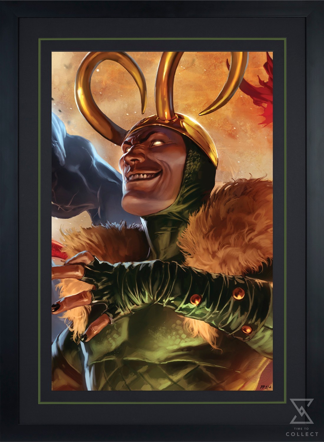 Originally created as a variant cover for Siege: Loki #1 (2010), written by Kieron Gillen for Marvel Comics, this Loki art is now available to fans as an unframed giclée print or in a custom framed presentation. Each Siege Loki Fine Art Print features an embossed Sideshow Seal of Authenticity as part of the limited edition of 200 pieces. Pair it with the Loki Premium Format™ Figure by Sideshow — sold separately — to pay the necessary tribute to this wrathful god.