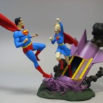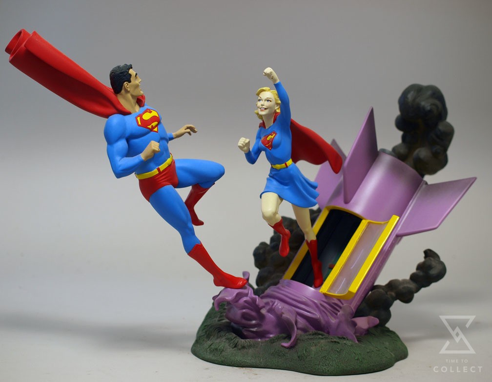 DC Direct illustrated box contains 12″ tall statue when assembled. Three-piece statue has separate pieces for Superman and Supergirl as well as crashed rocket base. Fully-painted, cold-cast porcelain statue was sculpted by Tim Bruckner and issued by DC Direct in 2001. Limited edition production run. Based on classic Curt Swan and Stan Kaye comic book cover from Action Comics #252 which presented the first appearance of Supergirl.
