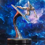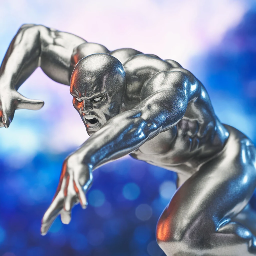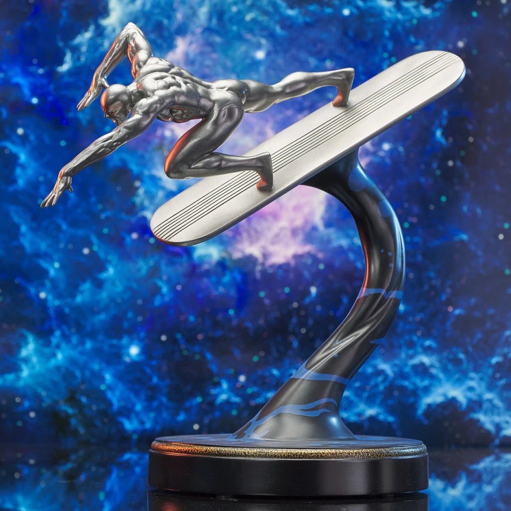 Swooping down to the surface at incredible speed, the Silver Surfer rides his shimmering surfboard in this dynamic statue. Hand-sculpted by Clayburn Moore based on a classic Marvel Comics cover, this statue pairs well with the Premier Collection Thor statue, and stands approximately 12 inches tall. It is limited to 3,000 pieces and comes packaged in a full-color box with a certificate of authenticity.