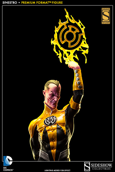 Formerly the Green Lantern for sector 1417, Thaal Sinestro now brandishes the yellow energy of fear in his pursuit to maintain control and preserve order. The Sideshow Collectibles Sinestro Premium Format Figure captures the mighty villain as the head of his very own Sinestro Corps, their yellow symbol emblazoned on his chest. One of the greatest lanterns to possess the ring, Sinestro wields an impressive saw-blade construct and towers almost 3 feet tall atop his yellow energy and lantern base. Unwavering in his dedication, Sinestro carries on the path to intergalactic peace, challenging Hal Jordan and the Guardians for control of the universe.