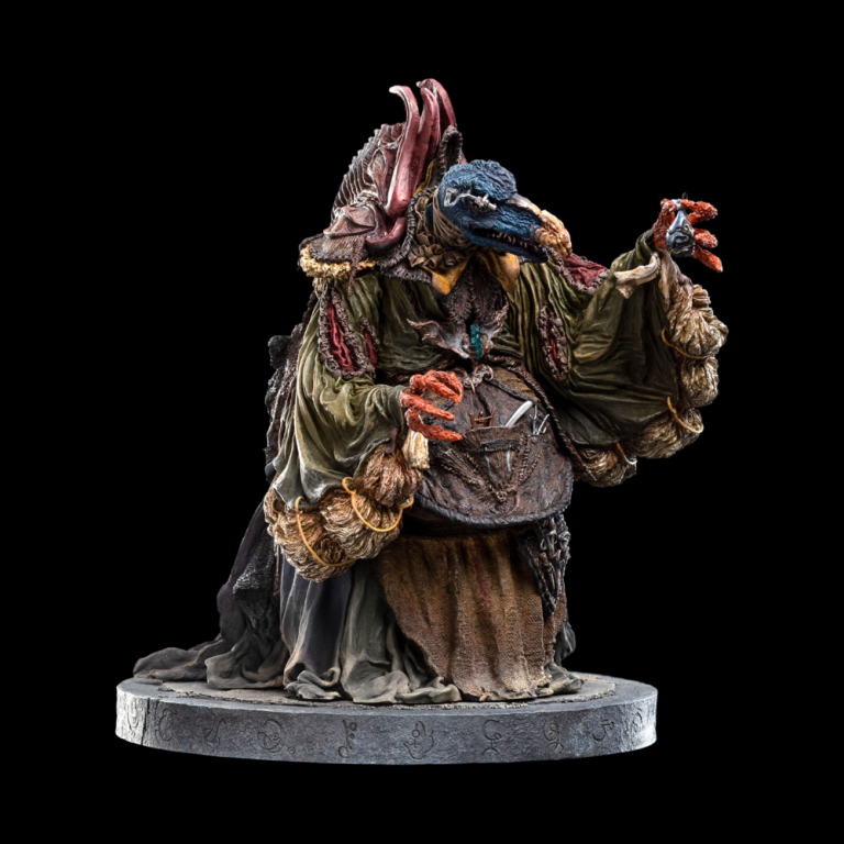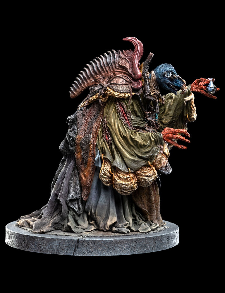 Sculpted in 1/6 scale, this limited edition polystone statue pays tribute to one of the most preeminent (and wicked) minds in the Castle of the Crystal. The scientist Skeksis features a rich & intricate costume with multiple sculpted fabrics, including skekTek’s bionic eye and toolbelt equipped for experimentation. Prototype sculpted by Weta Workshop sculptor Hao Wang.