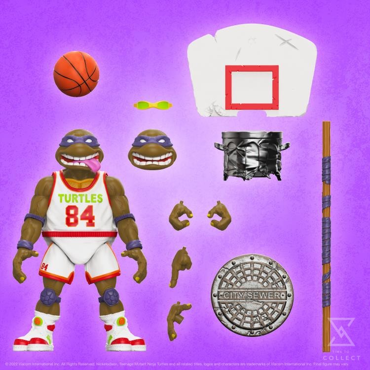 Slam Dunkin’ Don is ready to shoot and score in the TMNT universe! This 7” scale Teenage Mutant Ninja Turtles ULTIMATES! figure of Slam Dunkin’ Don features multiple interchangeable heads & hands and a variety of accessories including a basketball, backboard, trash can hoop, his bo staff, and more! To say this ULTIMATES! figure would be a slam dunk for your collection is way too obvious, so just go ahead and give the MVP – Mutant Valuable Player – what he deserves: a spot at the top of your TMNT collectibles roster!