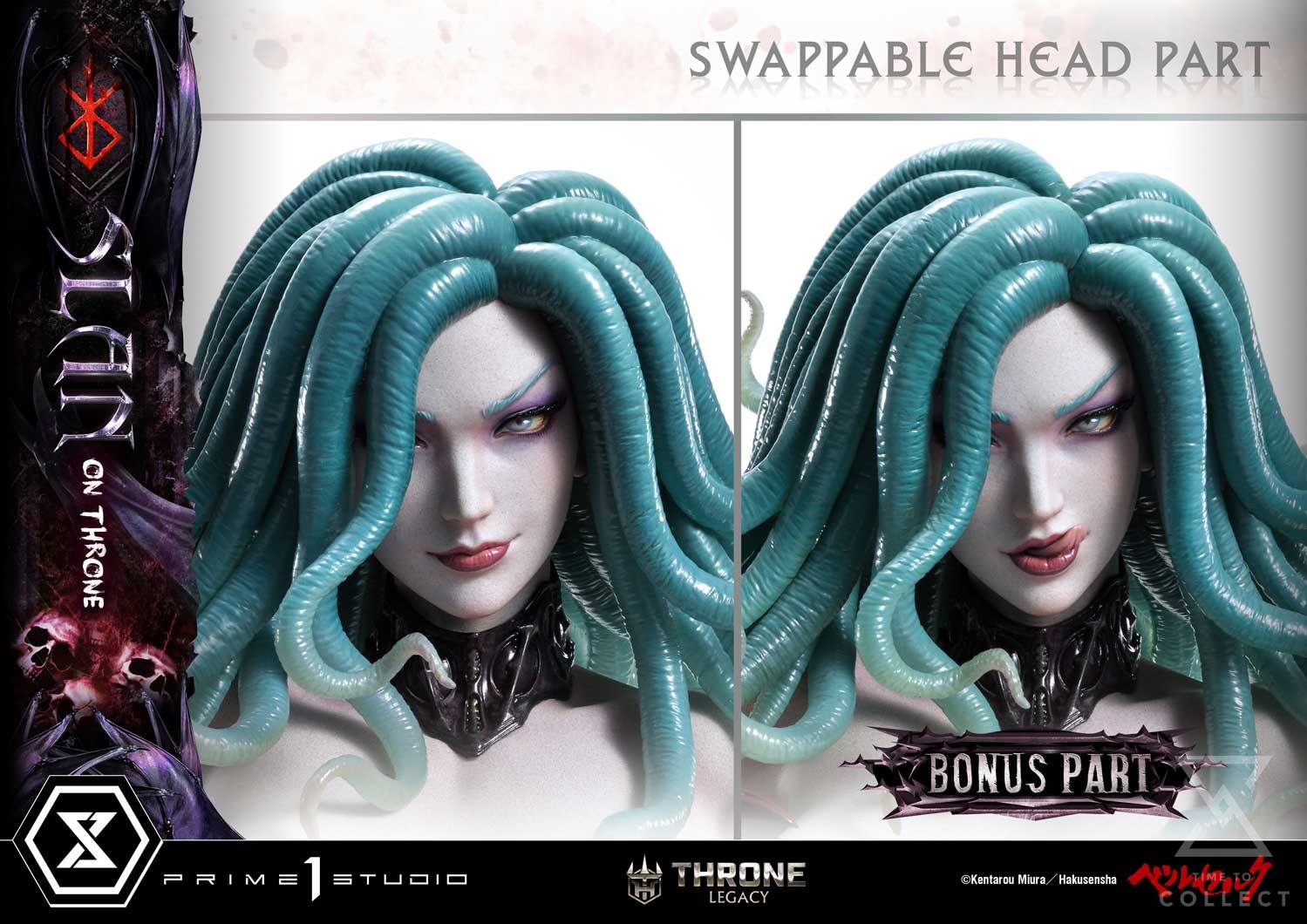 The Bonus Version comes with an extra swappable head for you to enhance the lusciousness of this beautiful piece. Just when you thought this statue couldn’t get any more tempting, you now have a chance to get the “Licking Lips” version swappable head too! This Bonus feature is only available at our official online store and retailers so be quick to get this exclusive piece. Wicked but elegant, the TLCBR-01S Berserk Slan Bonus Version from the Throne Legacy series is Prime 1 Studio’s new refreshing take on the dark fantasy world of Berserk. Display this magnificent sinister queen and add some glamorous dread to your Berserk collection!