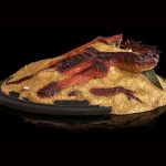 Yet peerless as Smaug is in size and power, doubt and jealous suspicion gnaw at him in his dreams and stir the Dragon from his slumber. Out there in the wide world the heir of Durin walks still, sworn to reclaim his lost crown and kingdom. Rumour of untold riches might yet attract foolhardy and unwanted guests, and the wretched Men of Lake-town dwell nearly upon the Dragon’s doorstep. Stirring to cast a smouldering eye across his hoard, the thought of thieves and interlopers kindles a fiery rage in the Wyrm’s belly.