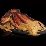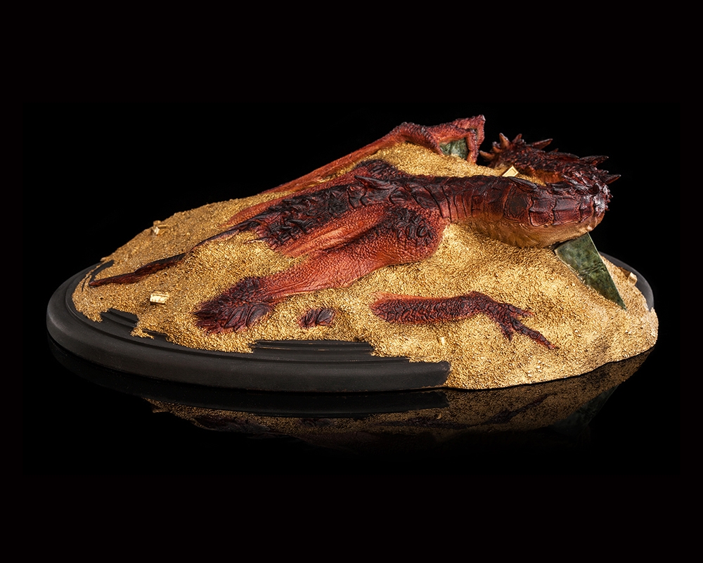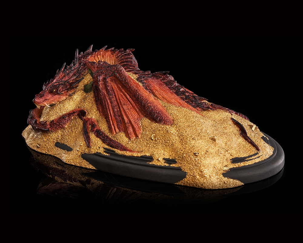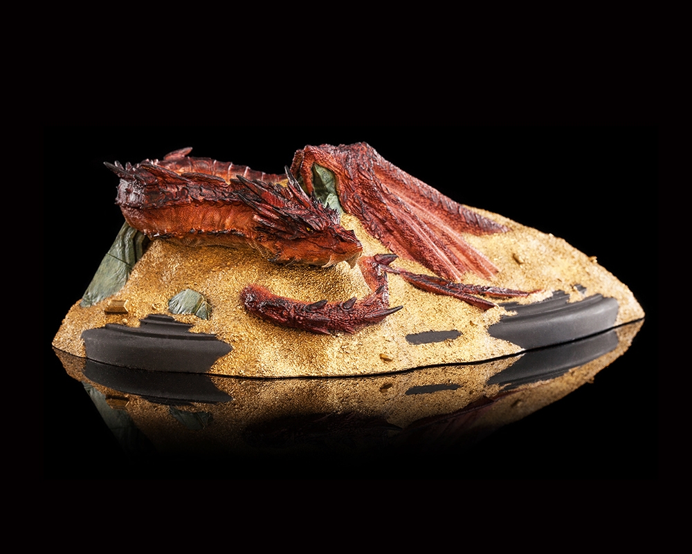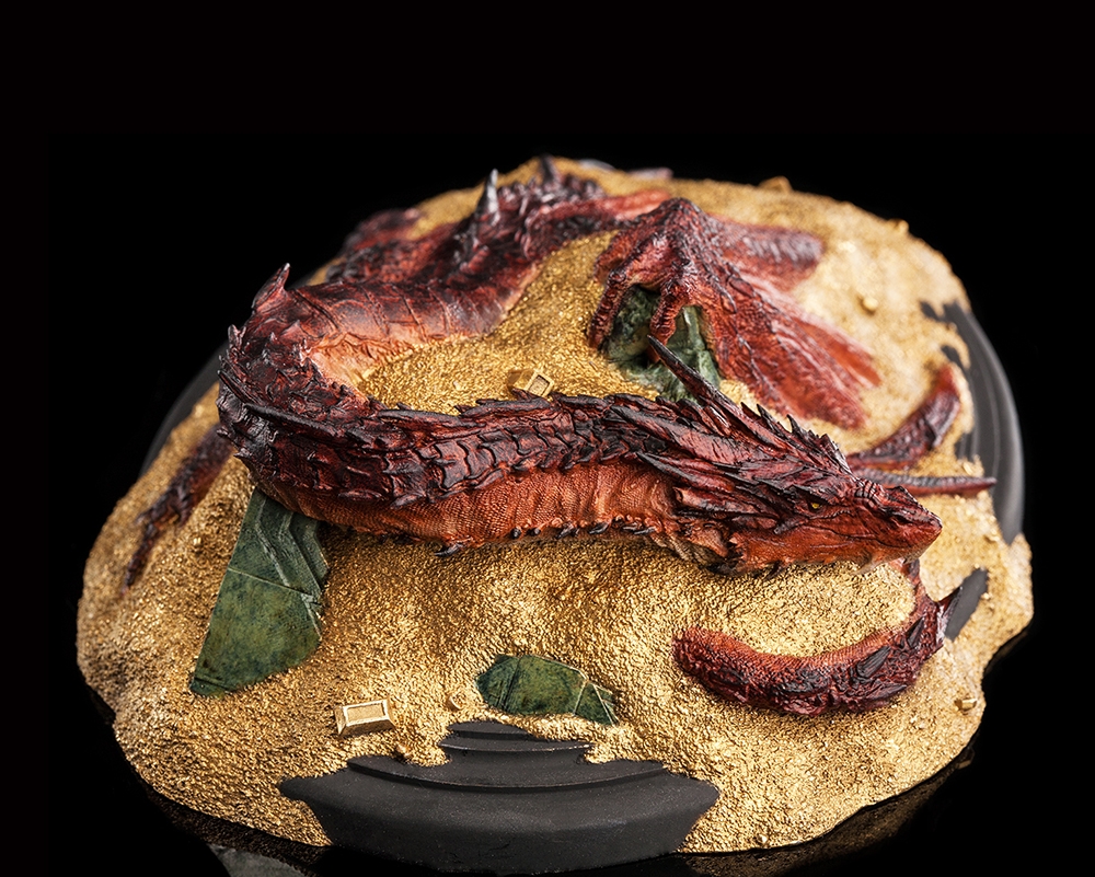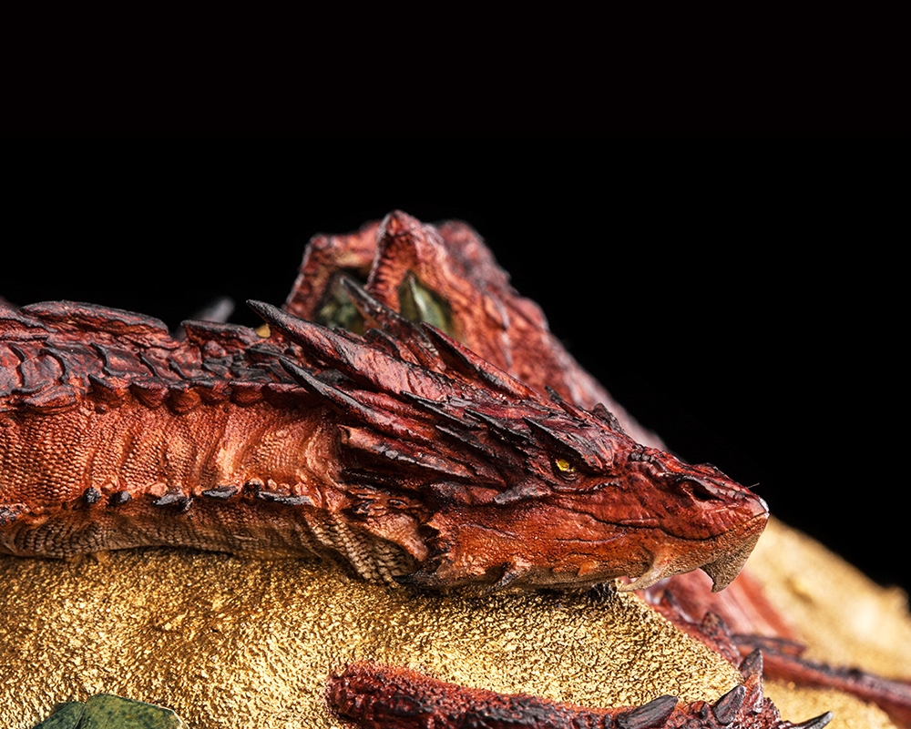 Coiled beneath a quilt of innumerable glittering coins and stolen treasures, the mighty Smaug slumbers, dreaming of gold. The Dwarven city of Erebor was no match for a fire drake and was taken in a storm of death and flame lasting mere moments. The Dragon has resided within the carved walls of stone, supreme and unchallenged in his dominion; the true King Under the Mountain.
