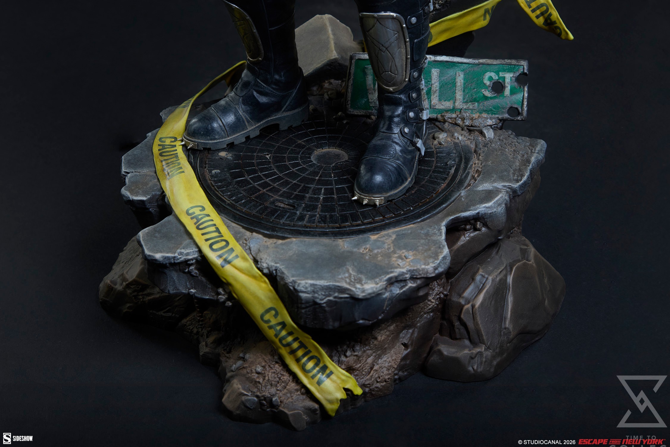 The rules are simple: Once you go in, you don’t come out. The Snake Plissken Premium Format™ Figure crash-lands collectors in the middle of the maximum-security prison formerly known as Manhattan. From top to bottom, this statue measures 22.25” tall x 10.81” wide x 11.27” deep, featuring the former Special Forces operative on his mission to retrieve the President. He stands surrounded by the dystopian remnants of society, with the famous Wall Street sign lost among the rubble, rebar, and tattered caution tape. A manhole cover beneath Snake’s boots is the only thing that stands between him and the killer Crazies.