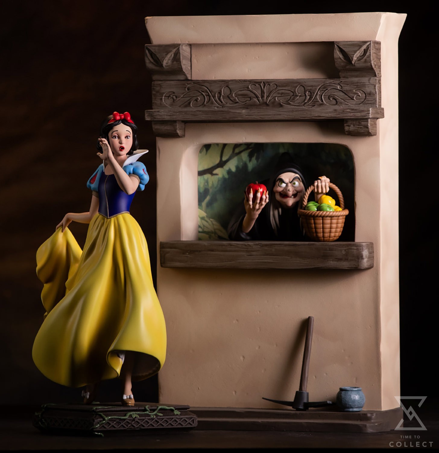 The Deluxe Edition also includes a swap-out portrait and left arm, as well as an accessory of the Evil Queen in her old hag disguise holding out an apple for our Princess. These bonus pieces are exclusive to the Deluxe Edition and allow for even greater storytelling possibilities in your collection. You can even pair this piece with the Disney’s Evil Queen Deluxe Edition Statue (Sold Separately) to create the ultimate Snow White display.