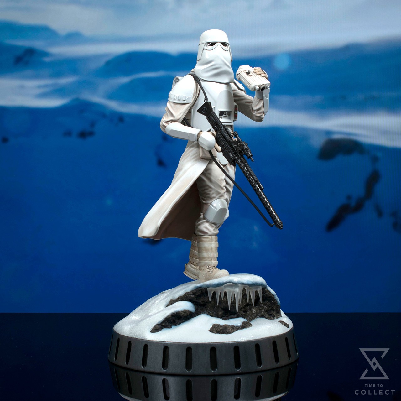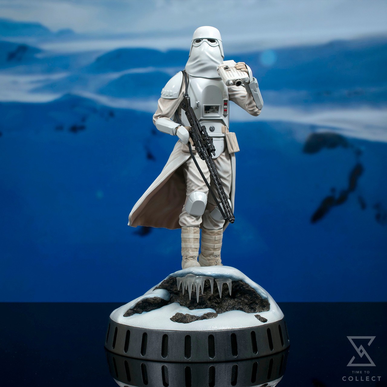 A Gentle Giant LTD release! The Snowtroopers are on the hunt for Rebels, and they may have found some! Standing on a snowy, rocky landscape, this 1/6 scale statue of an Imperial Snowtrooper holds a pair of binoculars in his hand and a rifle at his side, while the fabric of his uniform flaps in the wind. Measuring approximately 13 inches tall, this resin sculpture features detailed sculpting and paint applications. It is limited to only 1,000 pieces and comes packaged with a numbered certificate of authenticity in a full-color window box.