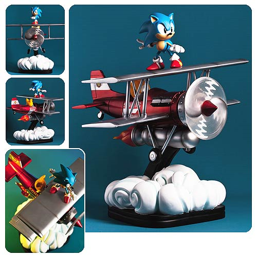 The entire scene is captured in high quality polystone that has been hand painted to capture one of the most iconic scenes in Sonic history in outstanding detail. The plane itself is also attached to the base via a pivoted joint that allows the plane to be posed and angled however the collector chooses.