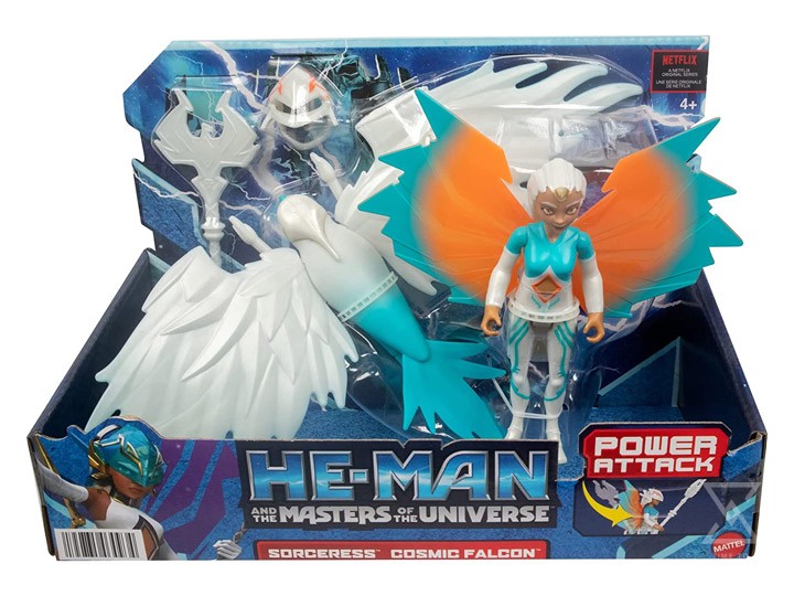 From the new He-Man and the Masters of the Universe animated series comes a new figure and vehicle of Sorceress! She stands about 5.50 inches tall and comes with her Cosmic Falcon that features movable wings.