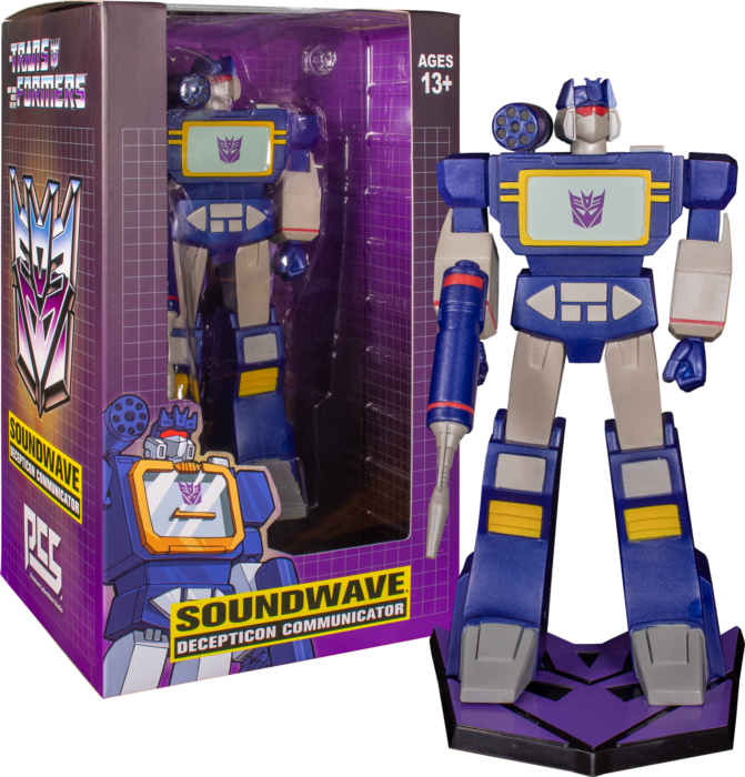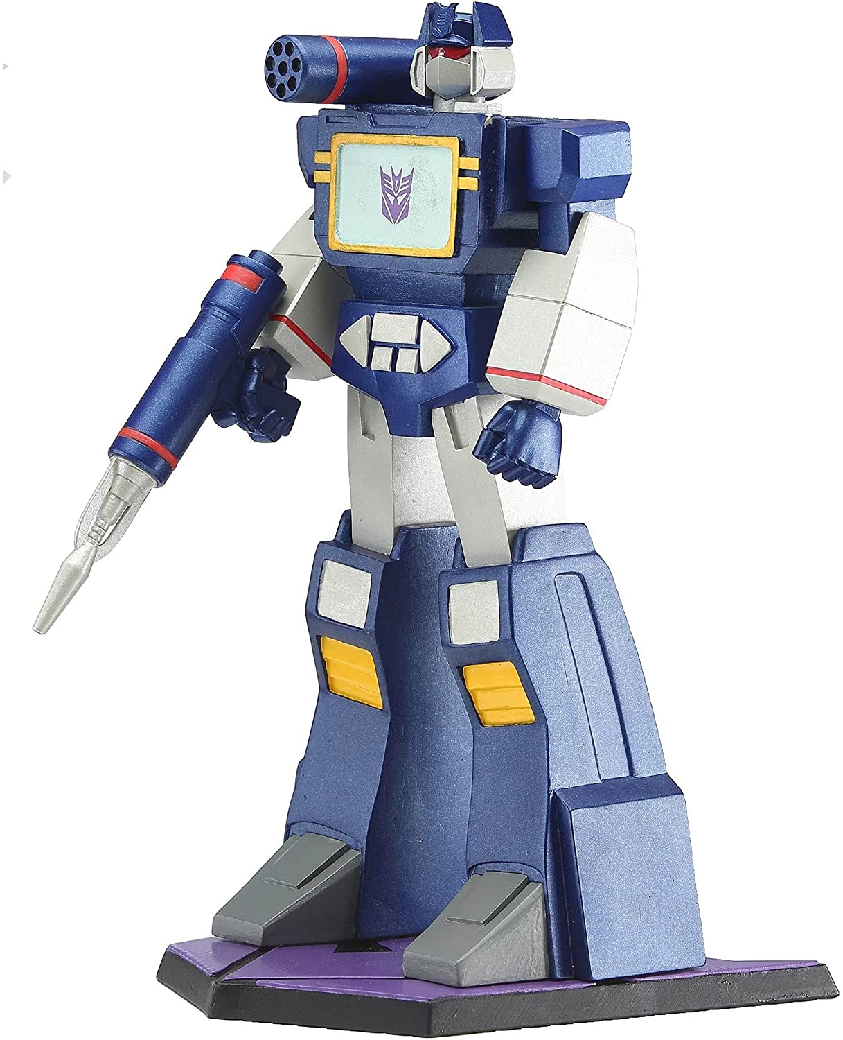 The Soundwave statue stands over 8.5” tall and is inspired by his appearance in the classic Transformers animated series. Featuring a metallic paint application and brandishing his signature Concussion Blaster, this Soundwave statue is a must have for any Transformers collector!