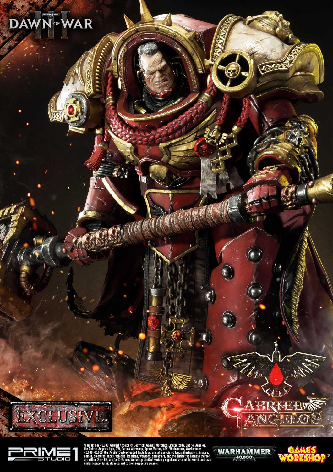 Prime 1 Studio and Games Workshop are proud to present Premium Masterline Warhammer 40 000: Gabriel Angelos from Dawn of War III. Captain Angelos is widely considered to be the finest living example of his Chapter and one of the notable heroes in the Chapter’s whole history. He was born on Cyrene, one of the Blood Ravens recruiting worlds, which was destroyed by an Exterminatus ordered by Angelos himself for reasons undisclosed shortly before Dawn of War. Gabriel Angelos is a long-standing commander of the 3rd Company, renowned for his victory against the forces of Chaos during the Tartarus campaign and another solid defeat delivered to the Tau Empire in the Targa system between Dawn of War and Dawn of War II. He has a reputation of delivering success even when facing impossible odds.