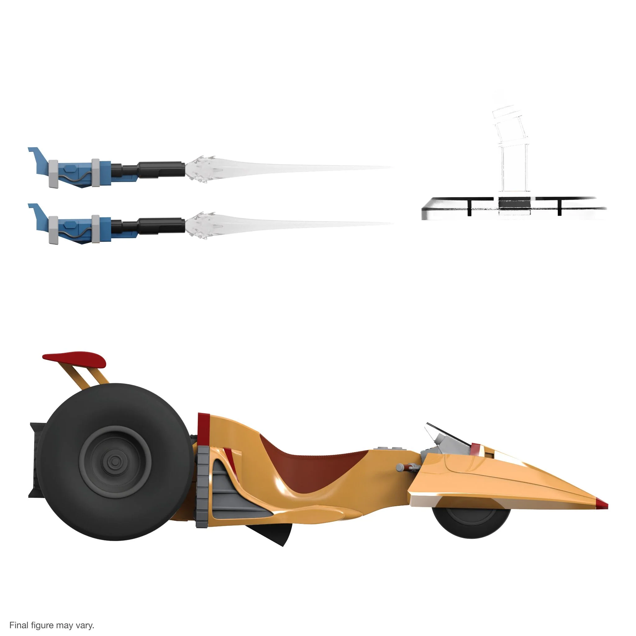 Rumored to be the fastest of the SilverHawks vehicles, the Space Racer™ is primed to deliver swift justice to Mon*Star™ and his galactic cronies! This 7” scale SilverHawks ULTIMATES! Space Racer™ vehicle is inspired by the ‘80s animated series and looks ready to soar into action with a sleek race car-inspired design! Featuring intricate sculpt and premium paint detailing, this vehicle also comes with an assortment of accessories including a detachable blaster, a pair of blaster effects, and a display stand! Don’t blink or you’ll miss the chance to add this Space Racer™ SilverHawks ULTIMATES! figure to your collection!