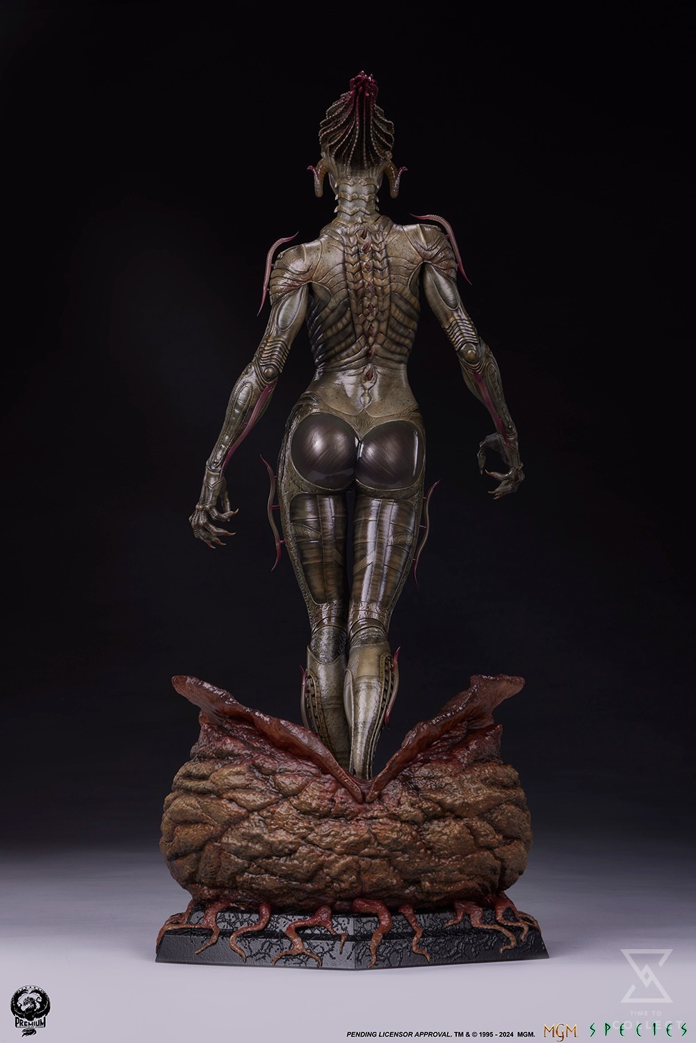 The Species 1:3 Statue is paired with an environmental base that give the impression the hybrid alien creature is stepping right out of the cocoon she used to evolve into her more mature, deadlier form.