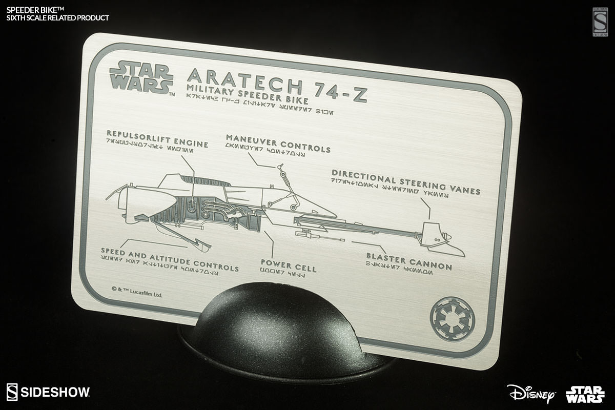 SIDESHOW EXCLUSIVE = Aratech 74-Z Speeder Bike Specification Card