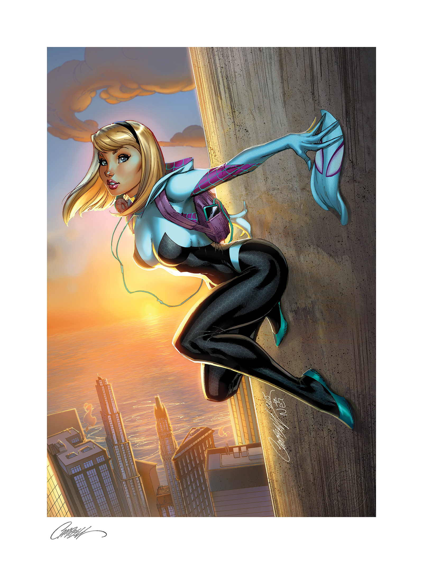 Take a break from busting criminals and add the Spider-Gwen #1 Fine Art Print by J. Scott Campbell to your Marvel collection today.