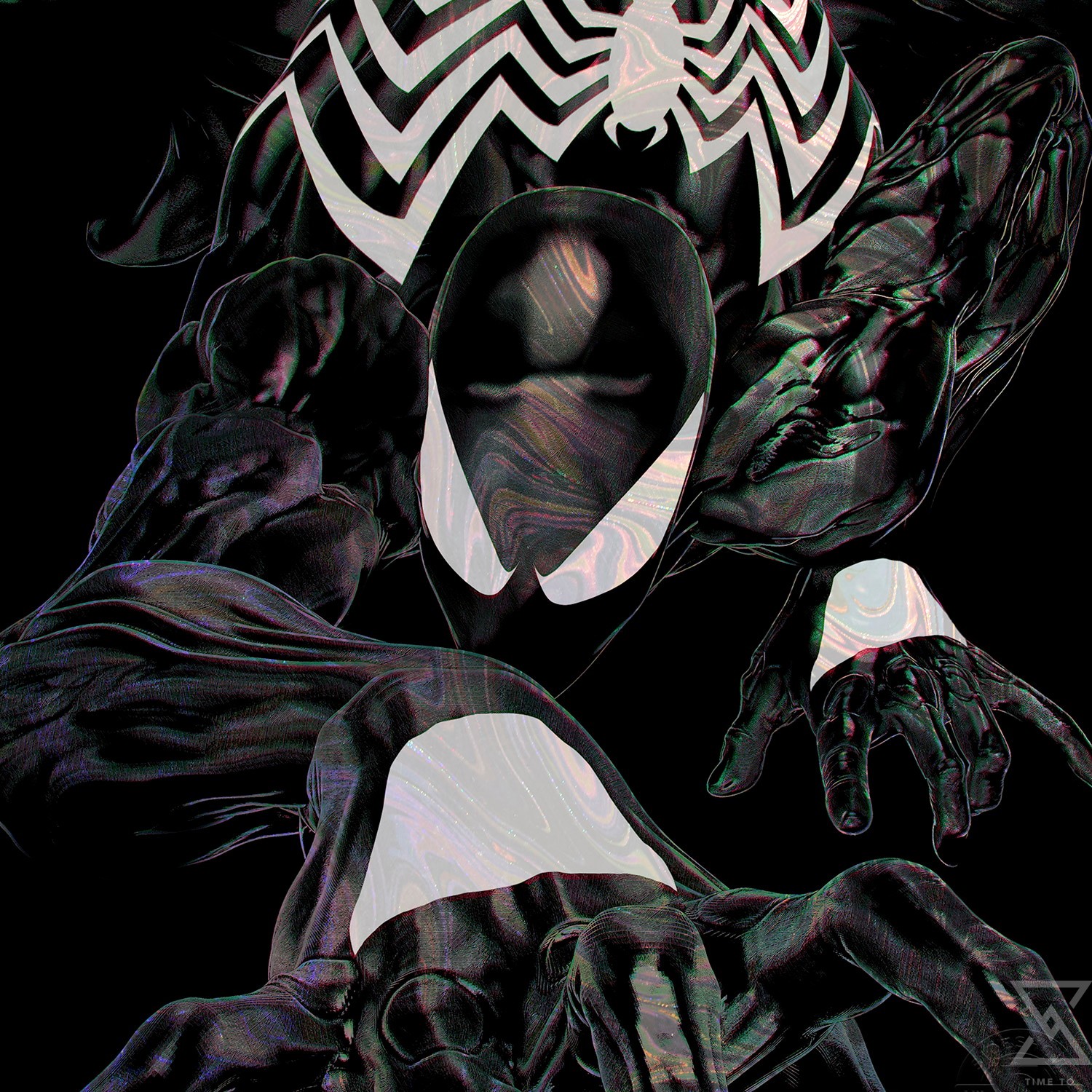 Look out — here comes the Spider-Man! Lithe and acrobatic, Peter Parker is as stealthy as an arachnid as he wall-crawls his way towards the viewer. Artist John Giang uses detailed textures and dynamic perspective to bring this iconic hero off the page and into your home in the Mighty Marvel Manner. The Spider-Man ’94 illustration features Spidey’s classic blue and red costume with the short-legged spider logo on the back. Exclusive to the bundled set, the Spider-Man ’94: Negative Bleed Variant depicts the infamous black symbiote suit in a mirrored pose, perfect for a paired display of prints.
