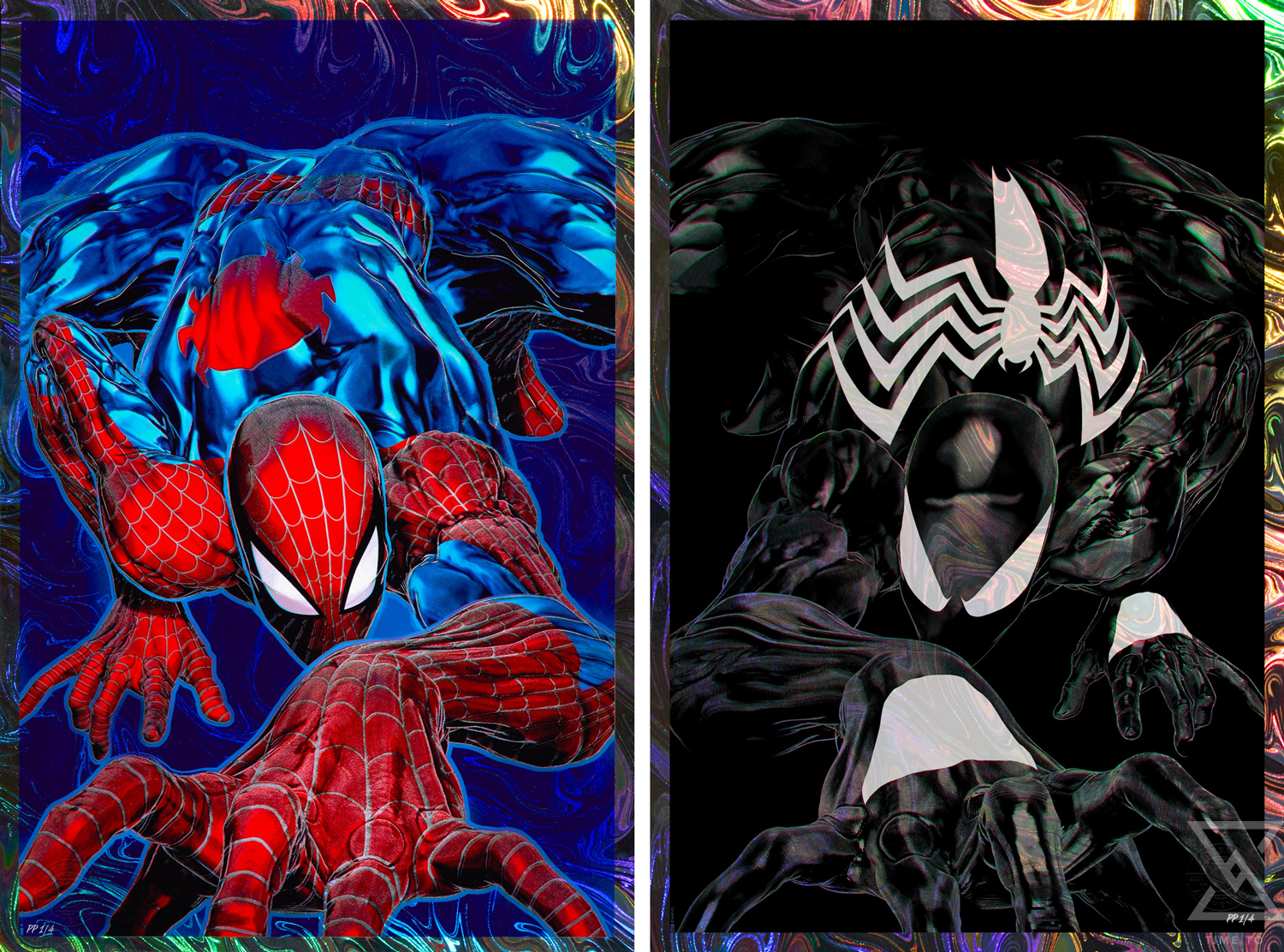 Originally created as variant covers for Spider-Man ’94 #1 (2025), written by J.M. DeMatteis for Marvel Comics, both pieces in the Spider-Man ’94 Fine Art Print Bundled Set feature an embossed Sideshow Seal of Authenticity. Printed on rainbow lava holofoil paper, the lithographs have a unique reflective look that further emphasizes the striking details of Spidey’s suit. Add these sensational Spider-Man art prints to your collection unframed or in a custom framed presentation for a display that catches eyes (and hopefully not thieves) just like flies! The bundled set is limited to 150 pieces.