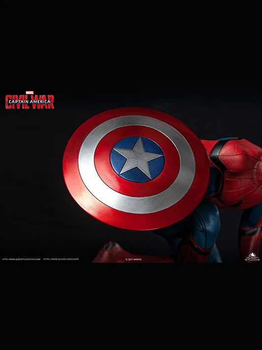 Queen Studios 1:4 scale Spider-Man statue captures the fan favourite web-slinger as we saw him in the airport battle scene in Captain America: Civil War. Intricately designed and expertly sculpted, this limited edition collectible brings the character to life in his iconic blue and red Spider-Man suit with webbed trim. As he kneels on the ground staring forward, he holds Captain America’s shield slightly a lift, ready to do battle with his new team of heroes.