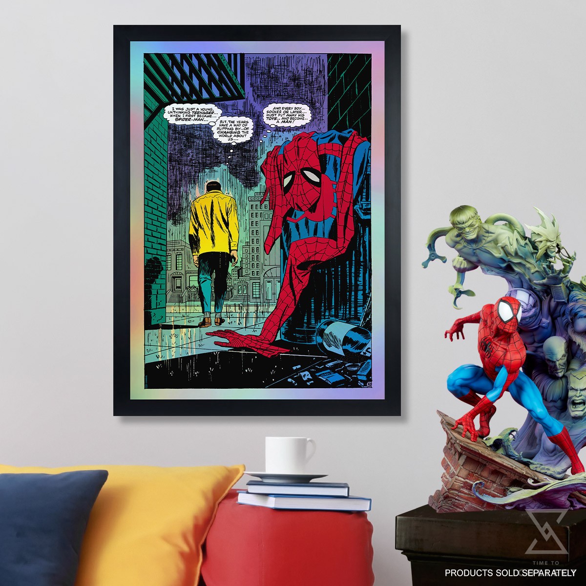 Printed by our friends at VG Kids, this 5-Color Screenprint Spider-Man art is printed on rainbow holofoil and available to fans as an unframed print or in a contemporary framed presentation. Each Spider-Man No More Variant Screenprint features an embossed Sideshow Seal of Authenticity as part of the ultra-limited edition of only 50 pieces.