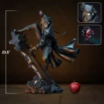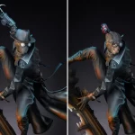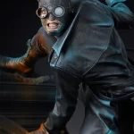 The Spider-Man Noir Premium Format Figure is fully sculpted and meticulously painted to evoke a dramatic, windswept wall-climber’s adventure through the city skyline. Peter Parker’s costume features a dark leather-like trench coat, turtleneck shirt, pants, boots, and his intricate Spider-Man mask complete with a fedora. Theatrical paint design uses warm orange tones to evoke interior light emanating from inside the building, while blue highlights emphasize the folds of his costume and the film noir-inspired aesthetics of this alternate Earth.