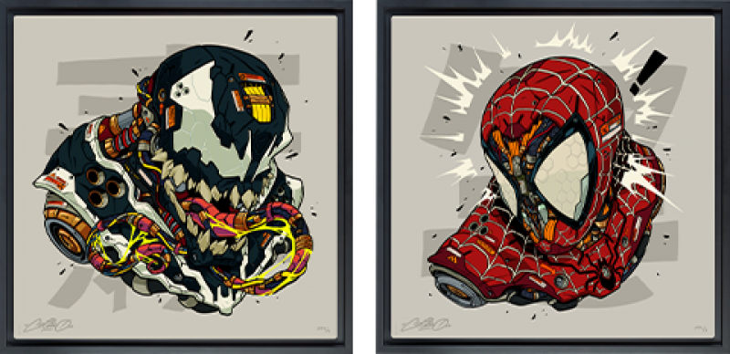 Man and machine. Friend and foe. Symbiote and spider. Opposites prove to make the perfect pairing in the Spider-Man & Venom MECHASOUL HD Aluminum Metal Print Set, a dynamic new take on two iconic comic book characters. Clogtwo’s MECHASOUL style explores the bond between man and machine, integrating complex machine imagery into natural forms to create something bold and unique- not unlike the strange synthesis between Eddie Brock and his symbiote partner, or Peter Parker and his radioactive abilities.