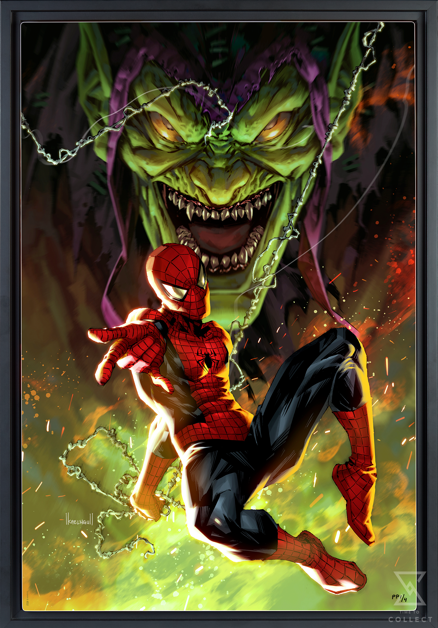 Make your friends and foes green with envy and bring home the Spider-Man vs Green Goblin Fine Art Print by Kael Ngu today!
