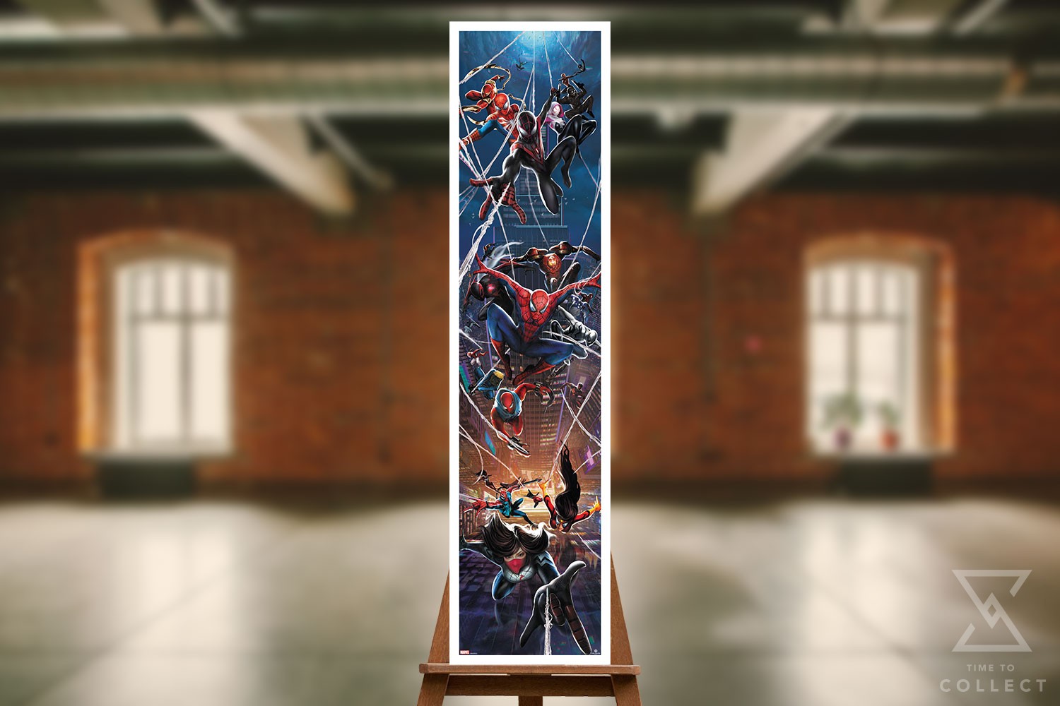 Featuring a connected Spider-Verse in a skyscraper-like format, this generously sized artwork was created by the acclaimed artist Jie Yuan. Bringing together a beautifully collected web of characters, this print is a must-have for fans of all things Spidey! Miles Morales, Gwen Stacy, The Amazing Spider-Man, Silk, and many more high-flying heroes abound!
