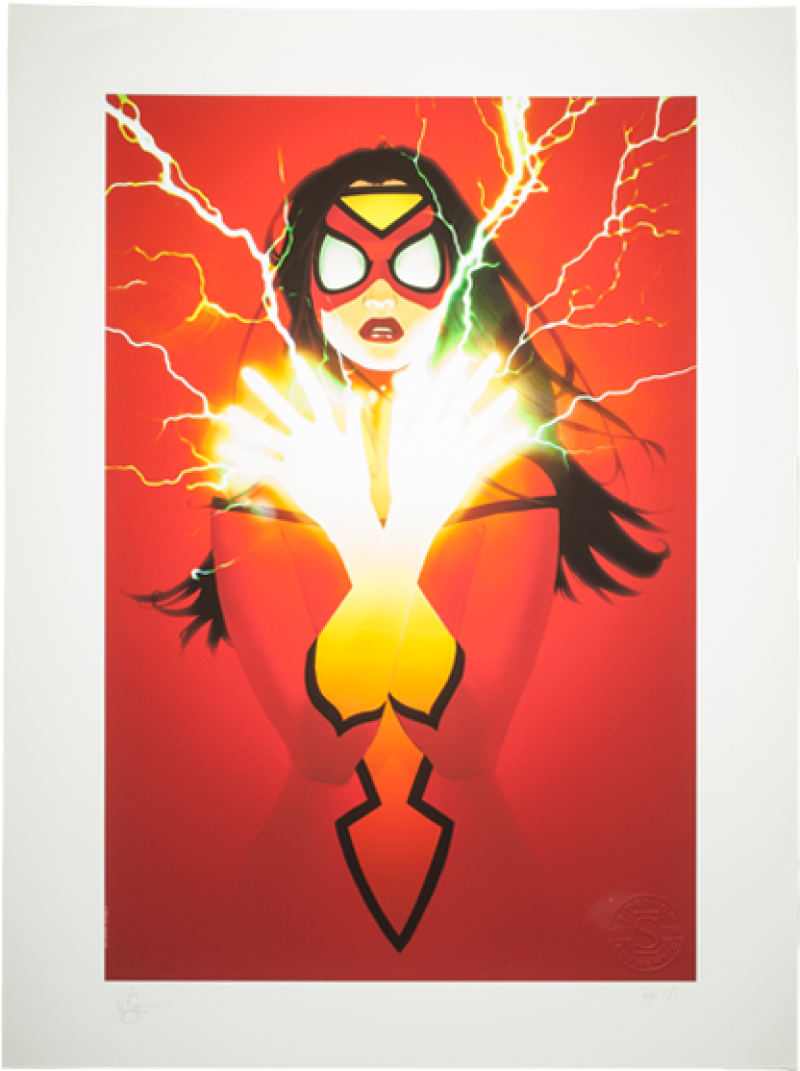 DEBUTING OUR MARVEL PREMIUM ART PRINTS COLLECTION, SIDESHOW COLLECTIBLES IS PROUD TO PRESENT THE SPIDER-WOMAN PREMIUM ART PRINT BY SCOTT FORBES. SLEEK AND RADIANT, SPIDER-WOMAN WILL LIGHT UP THE ROOM.