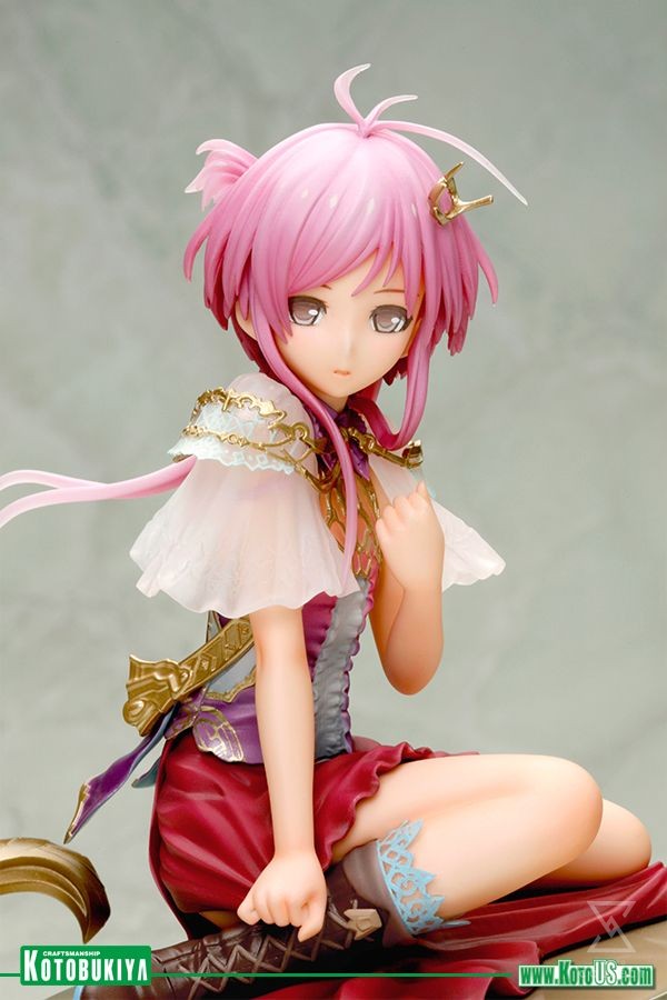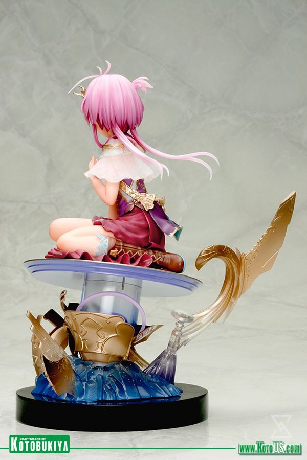 A Kotobukiya Japanese import! The next amazing Ani*Statue from Kotobukiya returns to the world of Rage of Bahamut, the fantasy adventure online card battle game from Cygames. Featuring unique designs and characters, the game has reached worldwide popularity and is perfect for inspiring statues. Following hot on the heels of Dark Angel Olivia and based on the artwork from the online game is Spinaria! Appearing exactly as she does on her rare card, Spinaria takes the form of a beautiful young woman kneeling on a floating disc. The supporter of man and demonkind looks super cute in a fantastical outfit consisting of a multi-colored dress with ruffled chest panel and diaphanous, translucent shoulder pieces plus a small leather cape hanging from a strap, and sturdy leather boots topped with a frilly accent.