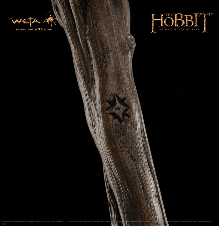 Radagast’s staff was created for the film by the artists at the 3 Foot 7 Art Department. Made in one piece from tough and strong fibreglass, this authentic prop replica has been created from molds of the original weapon used in the film and includes the mark of Radagast on the staff. Radagast’s staff comes with a black metal bracket for display, pride of place, on your wall. The blue ‘crystal’ (acrylic) in the head of the staff comes out – just as it does in the film, to create a bit of extra special magic…