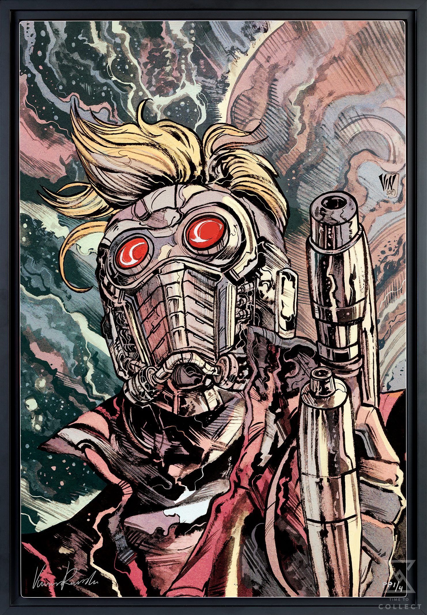 Bring a little action to your outer space adventures and add the Star-Lord Fine Art Print by Vincenzo Riccardi to your Marvel collection today.