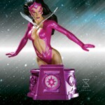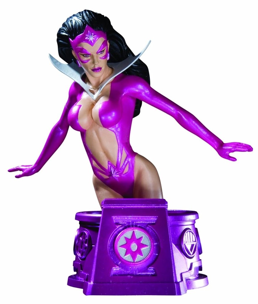 Based on the art of Ivan Reis. Sculpted by Jim Maddox. The Blackest Night continues in mini-bust form. Each month in 2011 DC Direct releases a mini-bust featuring a character from the hugely popular DC Comics’ epic Blackest Night. Star Sapphire continues the Heroes of the DC Universe: Blackest Night bust line. The sculpture features Star Sapphire atop a special base that displays the spectrum of Lantern symbols. The bust is hand-painted cold-cast in porcelain measures approximately 5.5” high x 5.5” wide x 3.5” deep and is packaged in a 4-color box.
