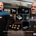 This 1:6-scale figure re-creates this iconic character in exquisite 1:6 detail. Standing approximately 12 inches tall, every element, from his 24th century jumpsuit to his shoulder mounted mobile emitter, is authentically reproduced. The original portrait sculpt of Robert Picardo as the Doctor has an authentic, hand-painted likeness.
