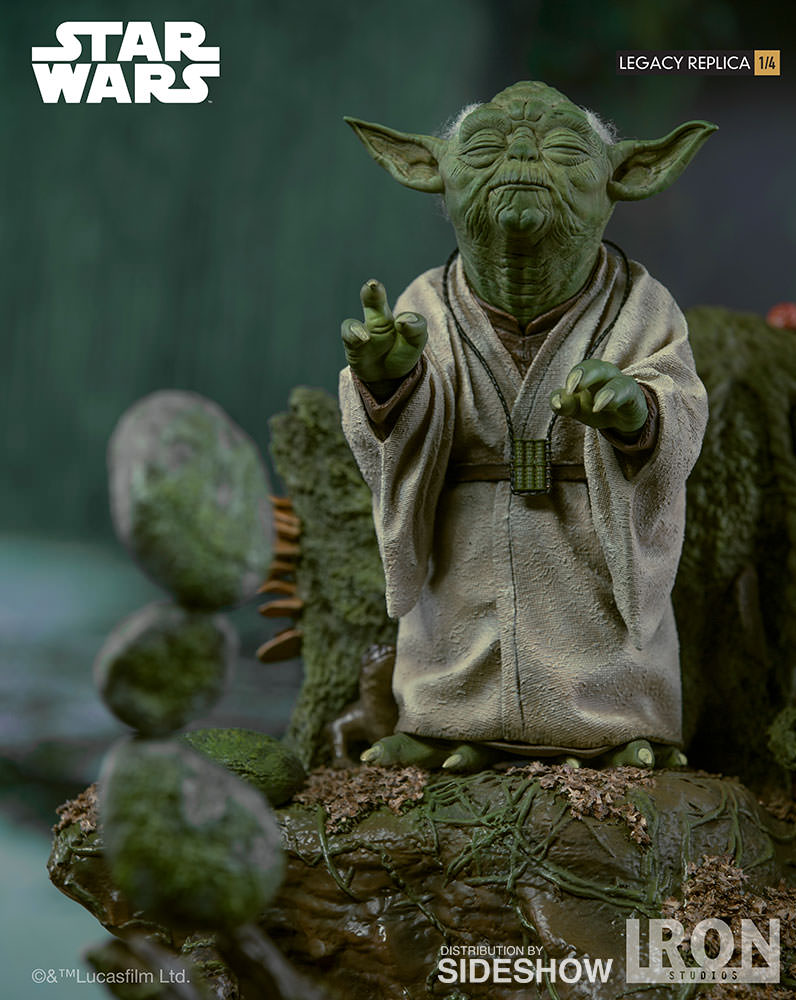 Iron Studios is proud to announce the latest from the Legacy Replica 1:4 Scale line – Master Yoda! Based on references from the film, this statue includes insects and animals to place around the base, a box of included accessories as well as two body positions for Yoda!