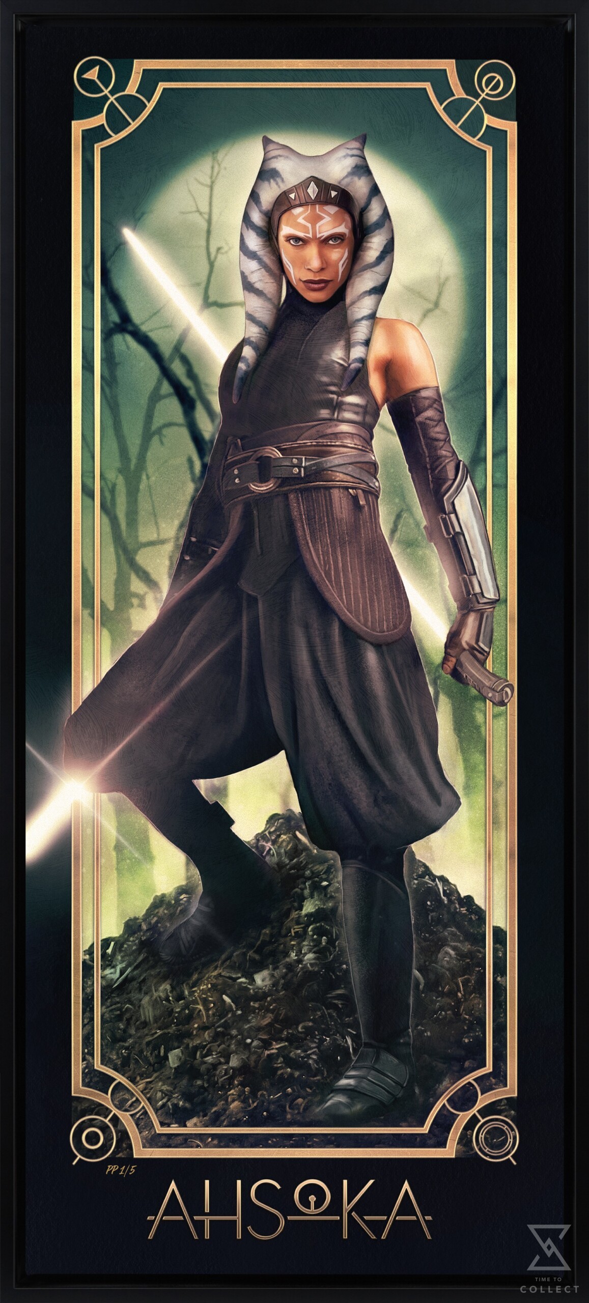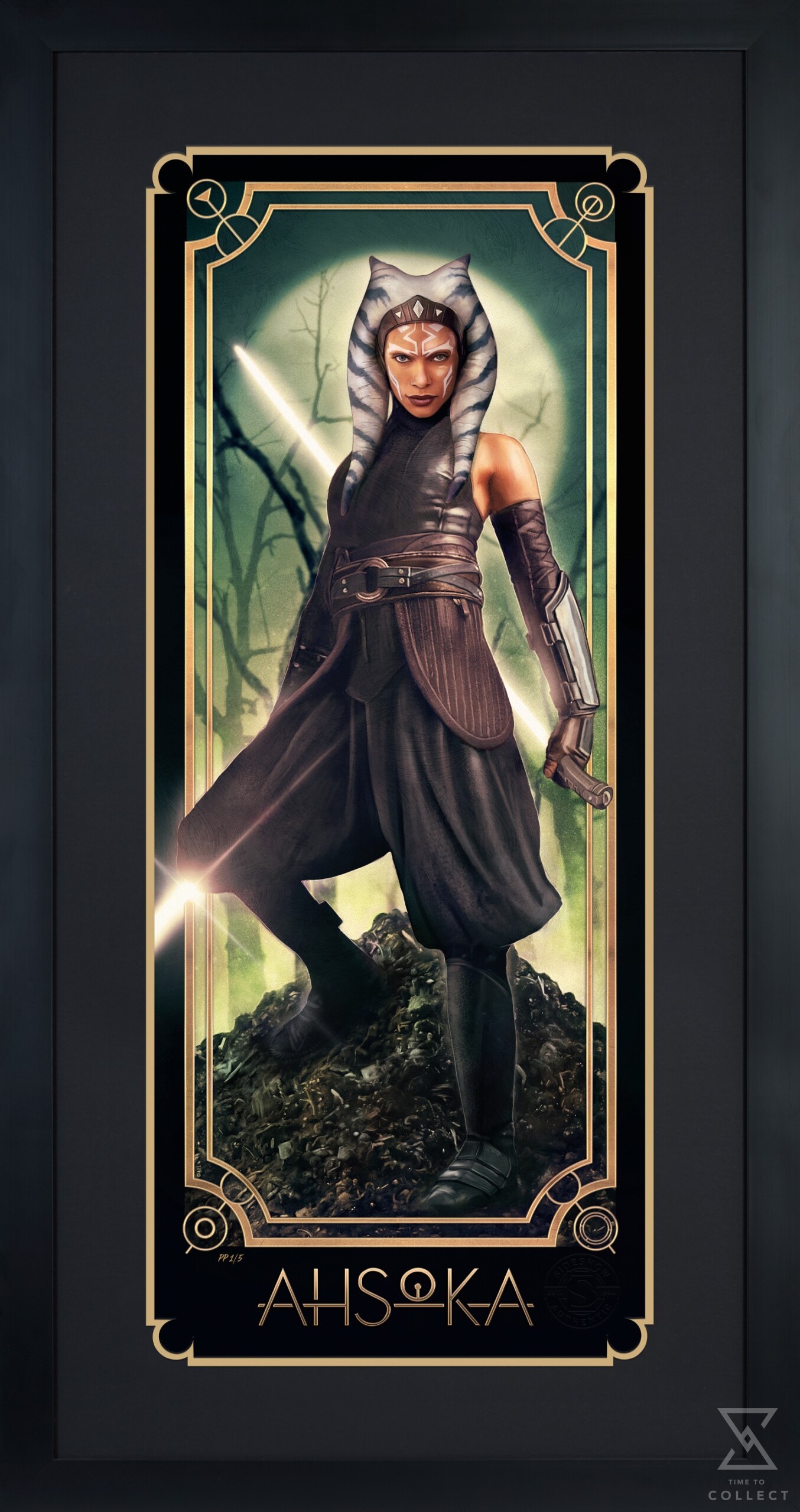 Inspired by the character’s appearance in the Disney+ series Star Wars: The Mandalorian™, this Ahsoka Tano art is now available to fans as an unframed giclée print or in a custom framed presentation. Each Star Wars: Ahsoka Tano™ Fine Art Print features an embossed Sideshow Seal of Authenticity as part of the limited edition of 250 pieces. Pair it with the Ahsoka Tano Premium Format™ Figure by Sideshow — sold separately — for the ultimate tribute to this Force-wielding warrior.