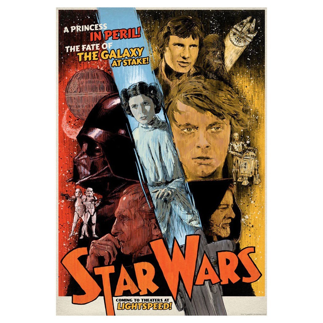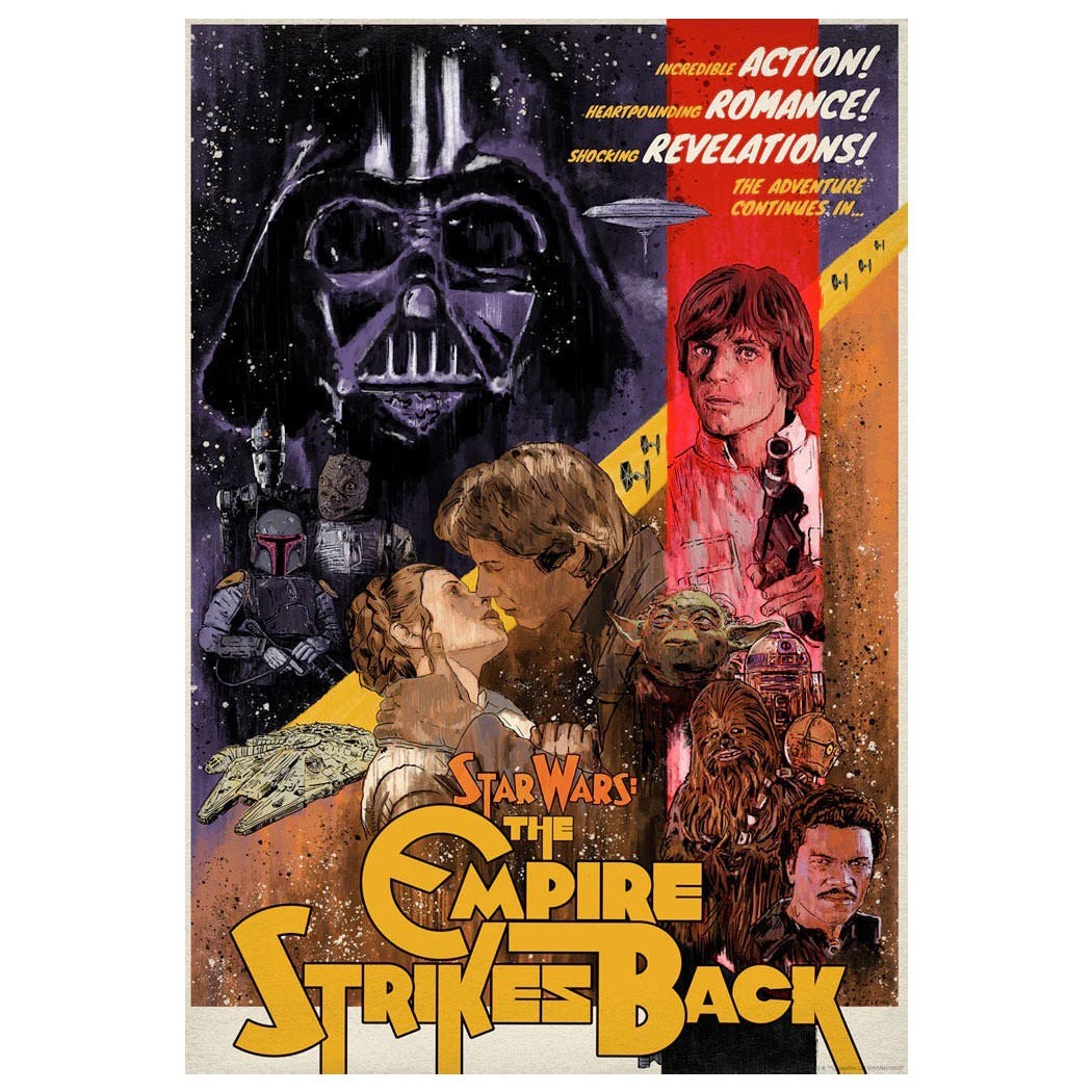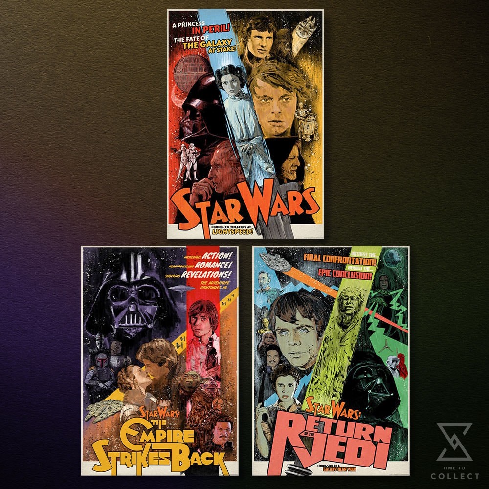 Inspired by A New Hope, The Empire Strikes Back, and Return of the Jedi and featuring a star-studded billing of Darth Vader, Luke Skywalker, Princess Leia, Han Solo, and many more, this classic poster-style print set is ready to join your collection of timeless Star Wars artwork and sci-fi collectibles!