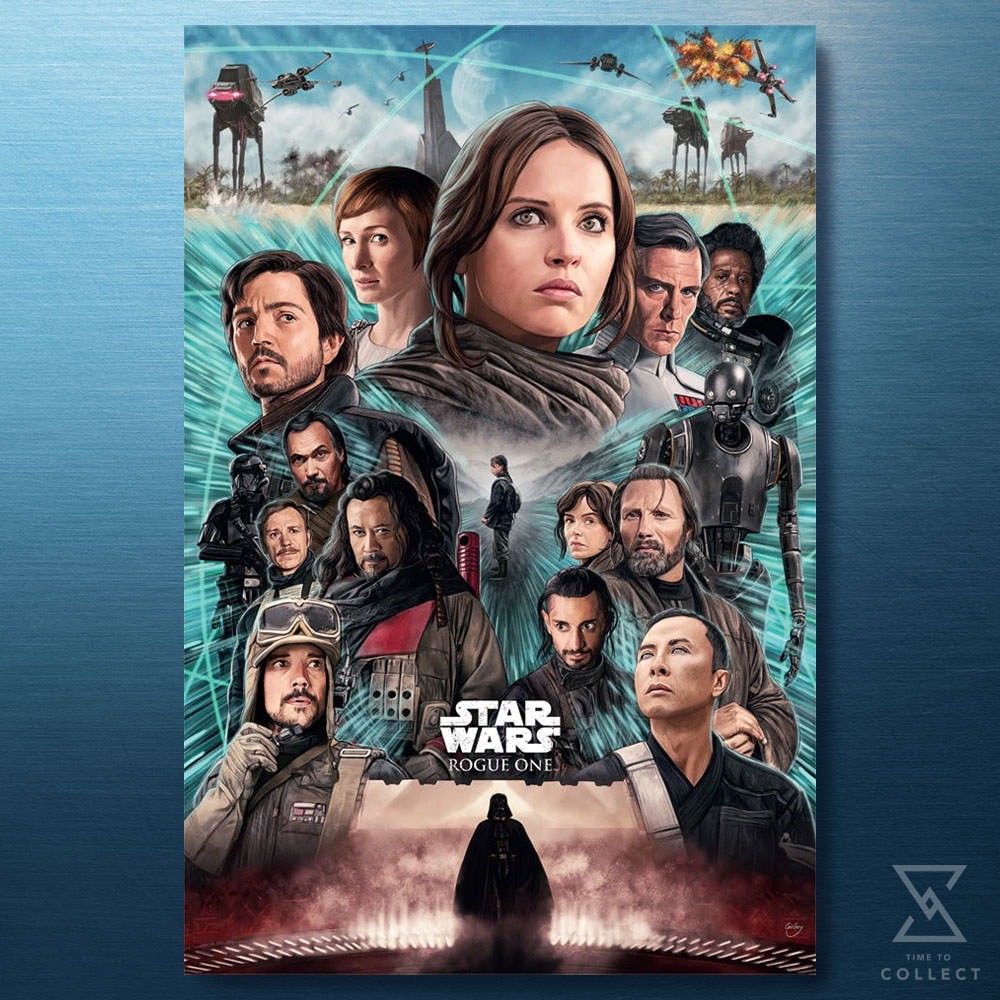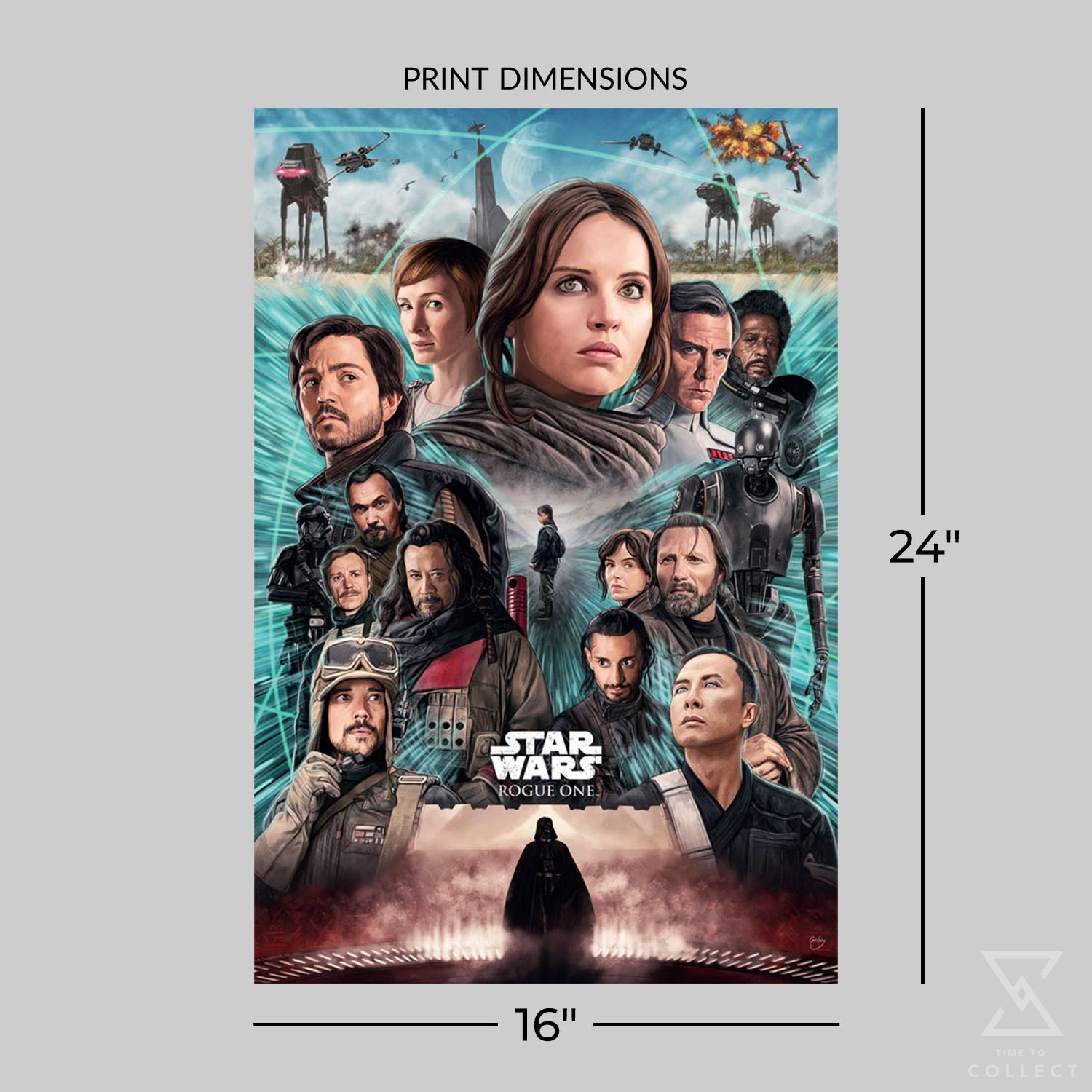 Celebrate the heroes of Star Wars: A Rogue One Story in this incredible Star Wars art featuring Jyn Erso, K-2SO, Cassian Andor, and Darth Vader among the faces of both the brave and the wicked. Each fine art lithograph print is hand-numbered from a limited edition of 250 pieces and comes with a Certificate of Authenticity.