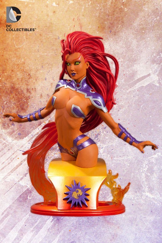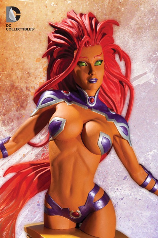Bursting onto the scene straight from DC Comics-The New 52, Koriand´r finds herself with some unlikely allies–Red Hood and the Outlaws! This is truly Starfire like you´ve never seen her before! Measuring approximately 16 cm H x 15 cm W x 9 cm D, this hand-painted, cold-cast porcelain statue is packaged in a 4-color box.
