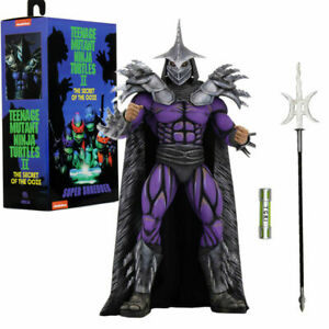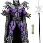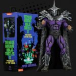 Based off of his appearance at the end of Teenage Mutant Ninja Turtles 2: The Secret of the Ooze, Super Shredder stands over 8″ tall and comes with an all fabric cape, interchangeable hands, a bishamon yari, and a TGRI canister.