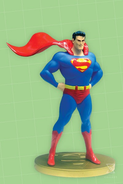 Based on art by Wayne Boring. Sculpted by John Cleary. Continuing the series of affordably priced statues featuring a classic Superman cover. The Man of Steel stands tall in this patriotic statue, ready to protect the citizens of Metropolis. This limited edition, hand-painted cold-cast porcelain statue measures approximately 8” tall x 4.75” wide x 3” deep and is packaged in a 4-color box.