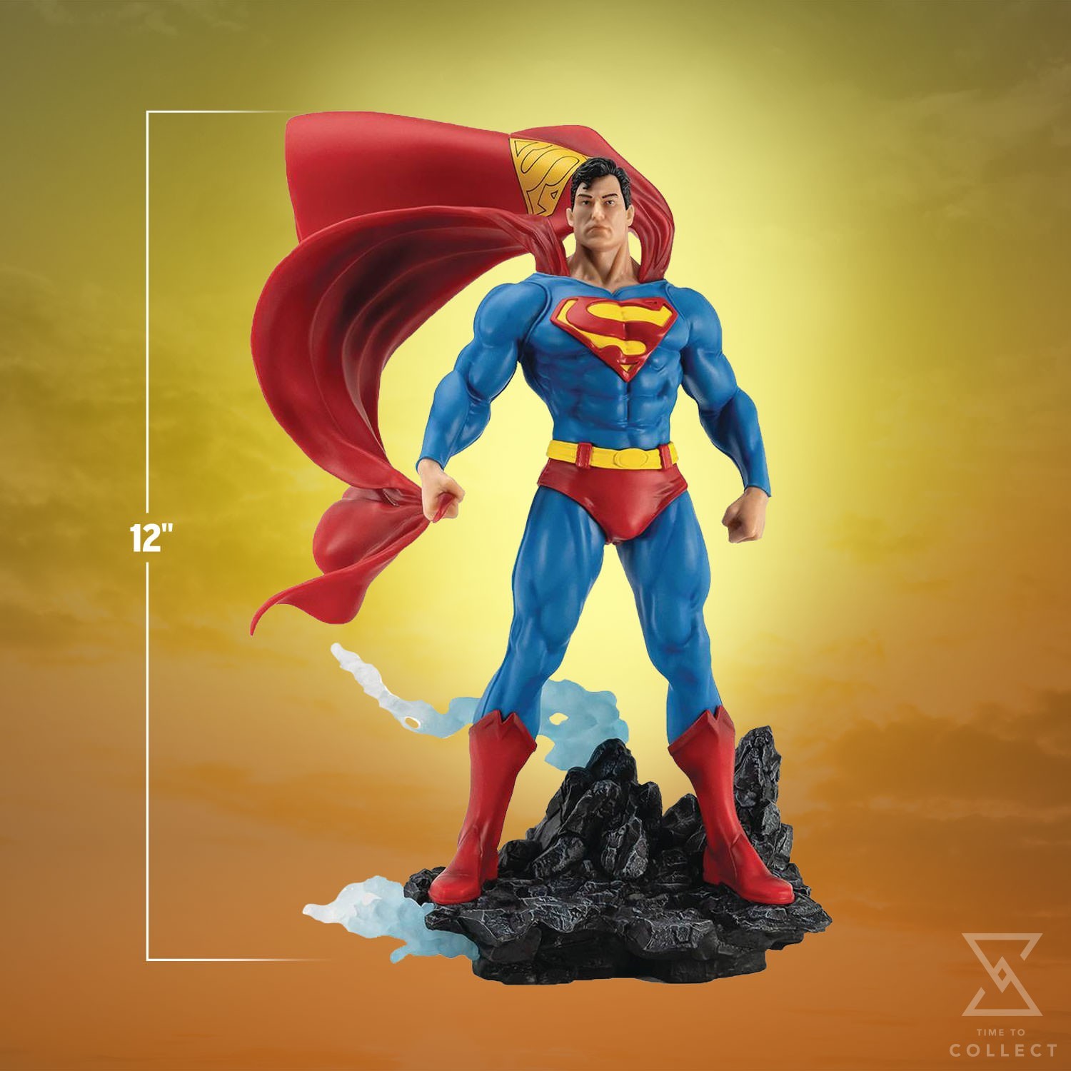 Standing at an impressive 12″ tall in 1:8 scale, Superman grips his flowing cape against a strong wind, recreating his pose from an iconic panel from John Byrne’s revolutionary 1986 mini-series Man of Steel. Meticulously crafted from PVC and ABS materials, this Previews Exclusive collectible is presented in a collector friendly full color illustrated window box.