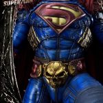 Flying in straight from Dark Nights: Metal #3, this version of Superman from the Dark Multiverse stands triumphantly at almost 35 inches tall! Prime 1 Studio’s Superman statue sports an impressive suit of armor befitting the Dark Metal Universe he hails from. Superman’s classic red and blue costume is completely decked out with straps, buckles, spikes and armor plating…as if the last Son of Krypton couldn’t do enough damage by himself! Prime 1 Studio has labored to give Superman the grittiest of textures, the likes of which we have hardly seen. Our skillful sculptors have given realistic believability to every wrinkle, crease and microtexture on his padded suit. They paid particular attention to the battle-worn raised “S” symbol on his chest. We echoed Superman’s menacing stare, by crafting exquisite skulls on his shoulders and belt buckle. And to match the high quality of the sculpting, our talented painters layered several finishes over his iconic base colors: metallic paints, weathering, dry brushing, and dark washes give this Superman statue an impressive dimensional character.