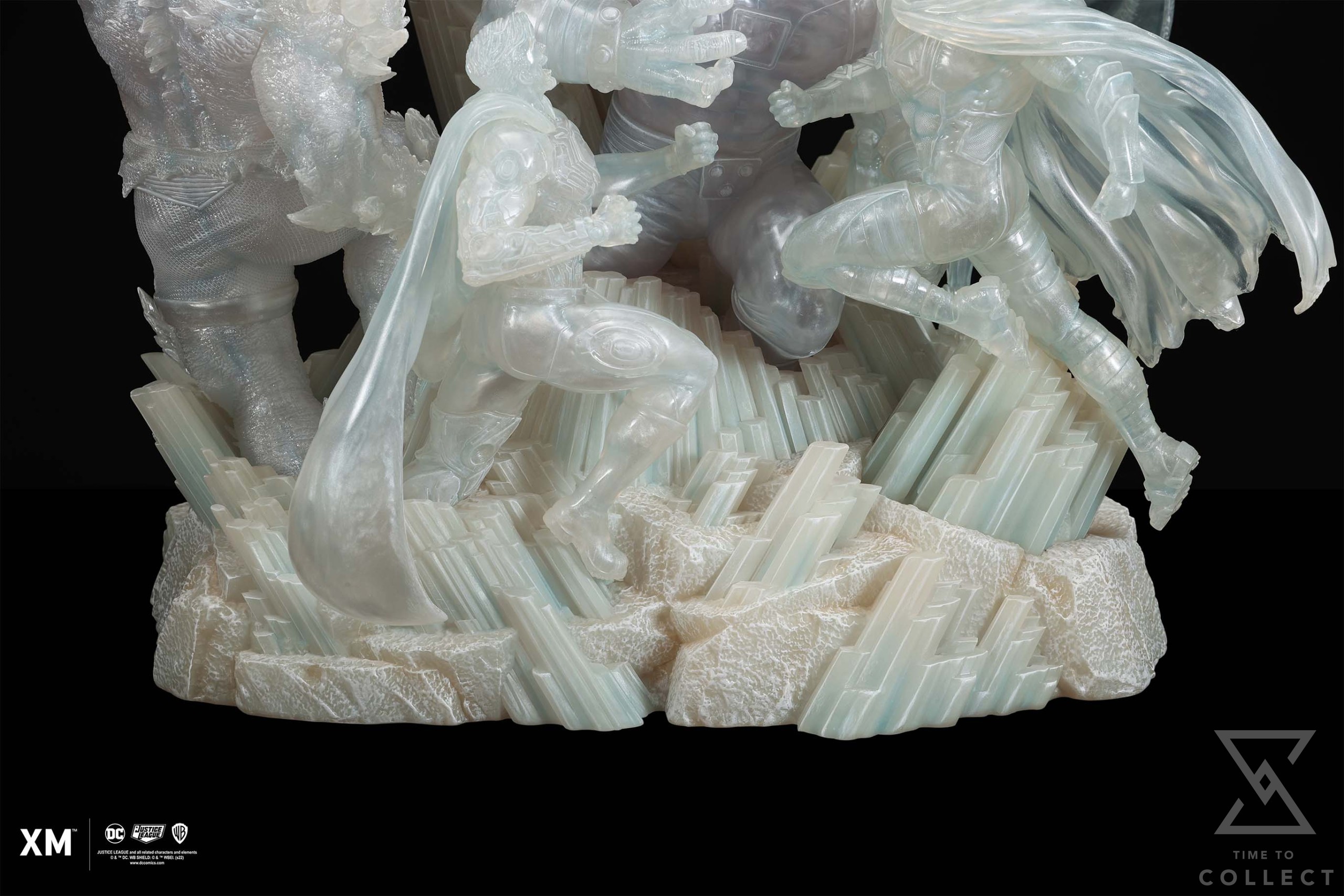 With this art piece, we explore Superman’s resolve and inherently dichotomous nature. Though not of earth, he goes out of his way to protect its inhabitants. While extremely powerful, he has a plethora of other mighty foes opposing him. And most of all, his tendency to spare the lives of his foes may very well come back to haunt him in unsuspecting ways. Still, he presses on with unwavering determination to stand up for what’s right to the point where it almost seems like his foes are desperately trying to capture him and obstruct his path of exacting justice. Collectors will be able to choose between two gorgeous paint application variations. The first one allows collectors to appreciate the varied foes in full colour, with every carefully hand-painted character furnished with fleshed out textures and stunning detail. Positioned in the centre of it all is none other than Superman himself, struggling valiantly against all odds. The ice crystal version features his foes painted in the iconic colors of The Fortress of Solitude, providing an alternative reading of the statue, in which Superman’s foes are recreated as a memoir and representation of his many battles against them.