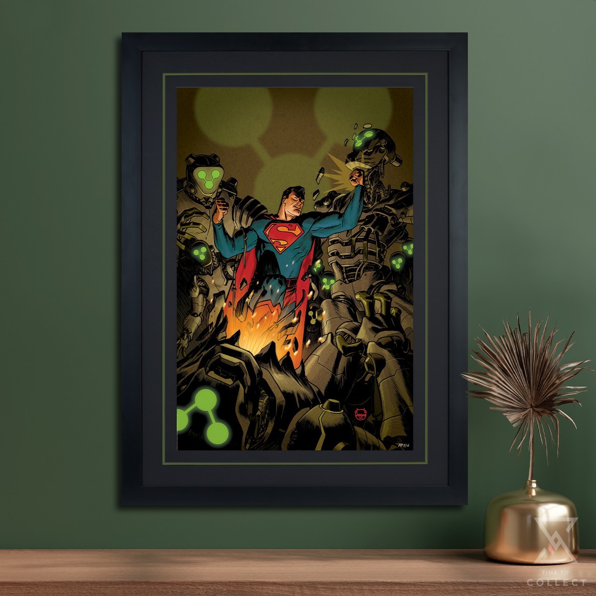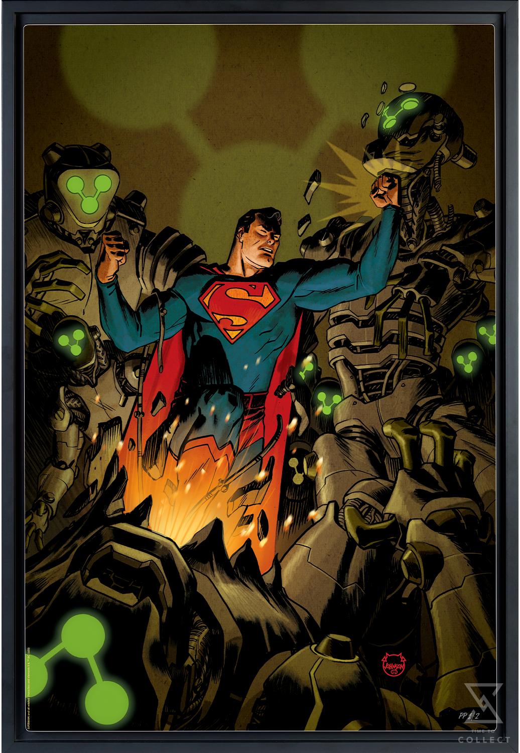 Originally created as a variant cover for Superman: Space Age #2 (2022), written by Mark Russell for DC, this retro Superman art is now available to fans as an unframed giclée print or in a custom framed presentation. Each Superman: Space Age Fine Art Print features an embossed Sideshow Seal of Authenticity as part of the limited edition of 175 pieces.