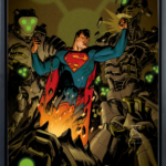 Brainiac’s bots are no match for the Man of Steel! Soaring upward, Superman lands a decisive blow upon the nearest mechanical drone. Outnumbered, yet by no means outmatched, Kal-El displays all the power and fortitude expected of those who wear his house’s signature “S” insignia. He won’t stop until the battle is won — until there is justice for all!