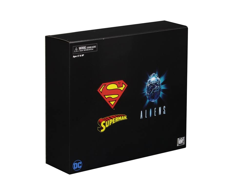 The set includes two brand new, comic book based figures, both with over 30 points of articulation. Superman stands approximately 7” tall, features a fabric cape and comes with attachable eye blast effect. The Alien stands approximately 9” tall and has a bendable tail.