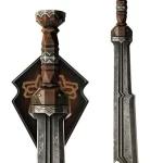 This authentically detailed replica is a reproduction of the actual filming prop built by Weta Workshop of New Zealand and used in the motion picture, THE HOBBIT: AN UNEXPECTED JOURNEY. United Cutlery, industry leader in fine movie reproductions, has meticulously recreated the prop using only the finest grade materials and craftsmanship. Close attention to detail was a top priority. The Sword of Fili is 25 1/2”(65.2cm) overall, featuring a massive 3/8″ thick stainless steel blade, and a hilt of solid metal and hard acrylic. It is presented with a wood wall display and includes a certificate of authenticity.